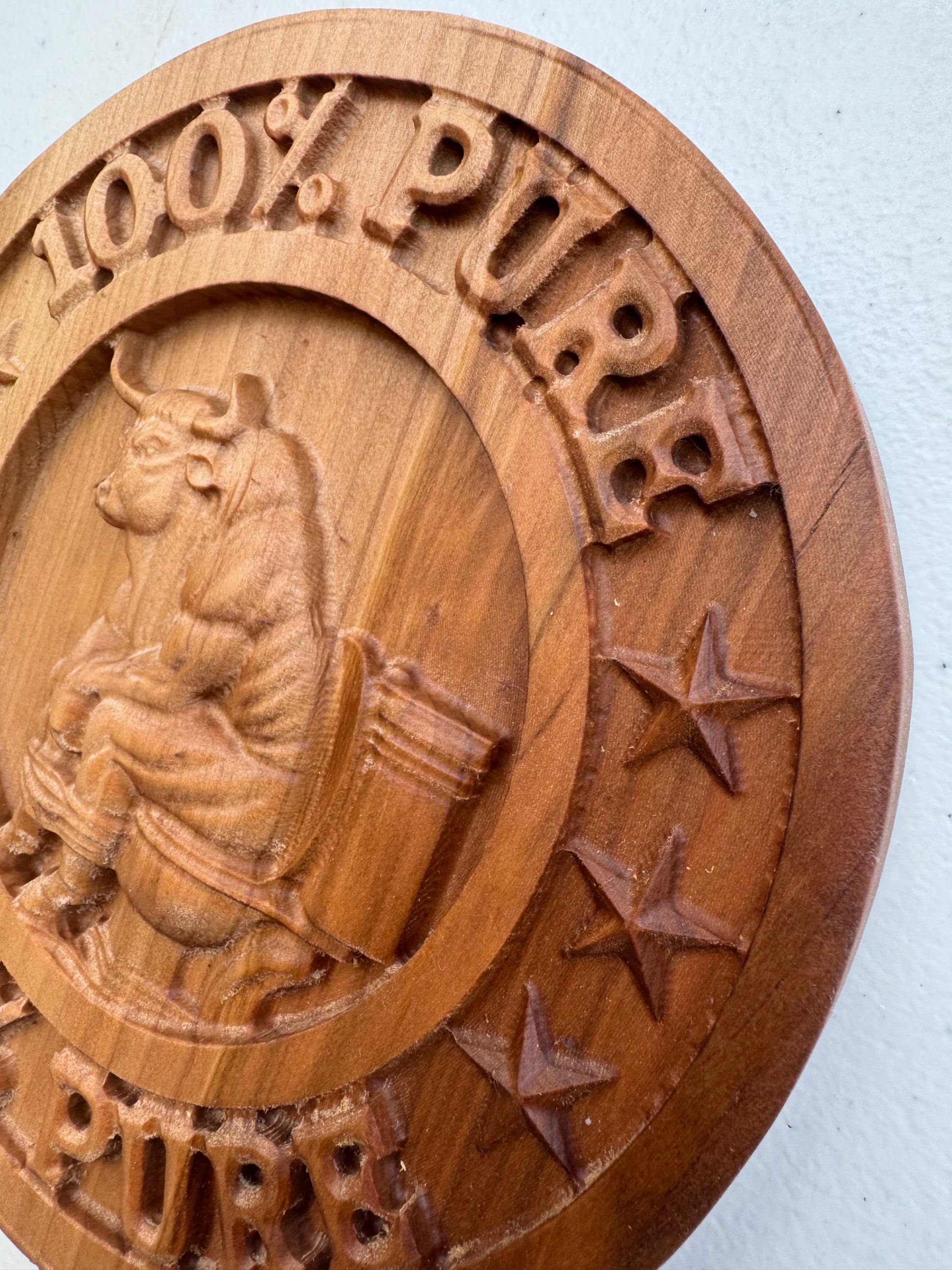 Funny 3D Carved Wood Sign, Bull on Toilet, Rustic Gag Gift